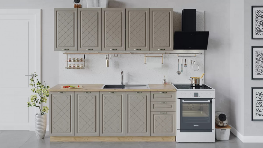 В стоимость не включено: Стеновая панель, столешница, доводчики, бытовая техника, мойка, смеситель, аксессуары