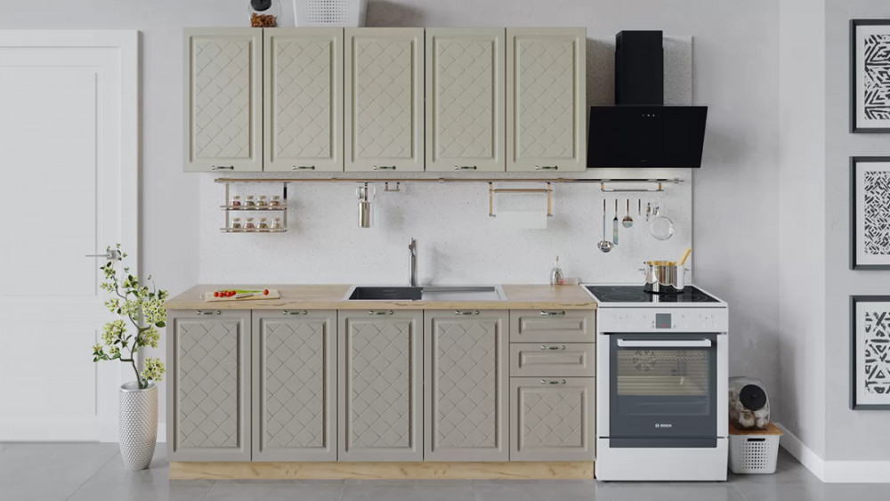 В стоимость не включено: Стеновая панель, столешница, доводчики, бытовая техника, мойка, смеситель, аксессуары