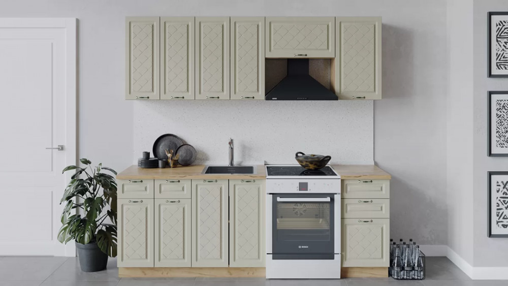 Габаритный размер готового набора модулей с учетом газовой плиты на 60 см: 2 200
