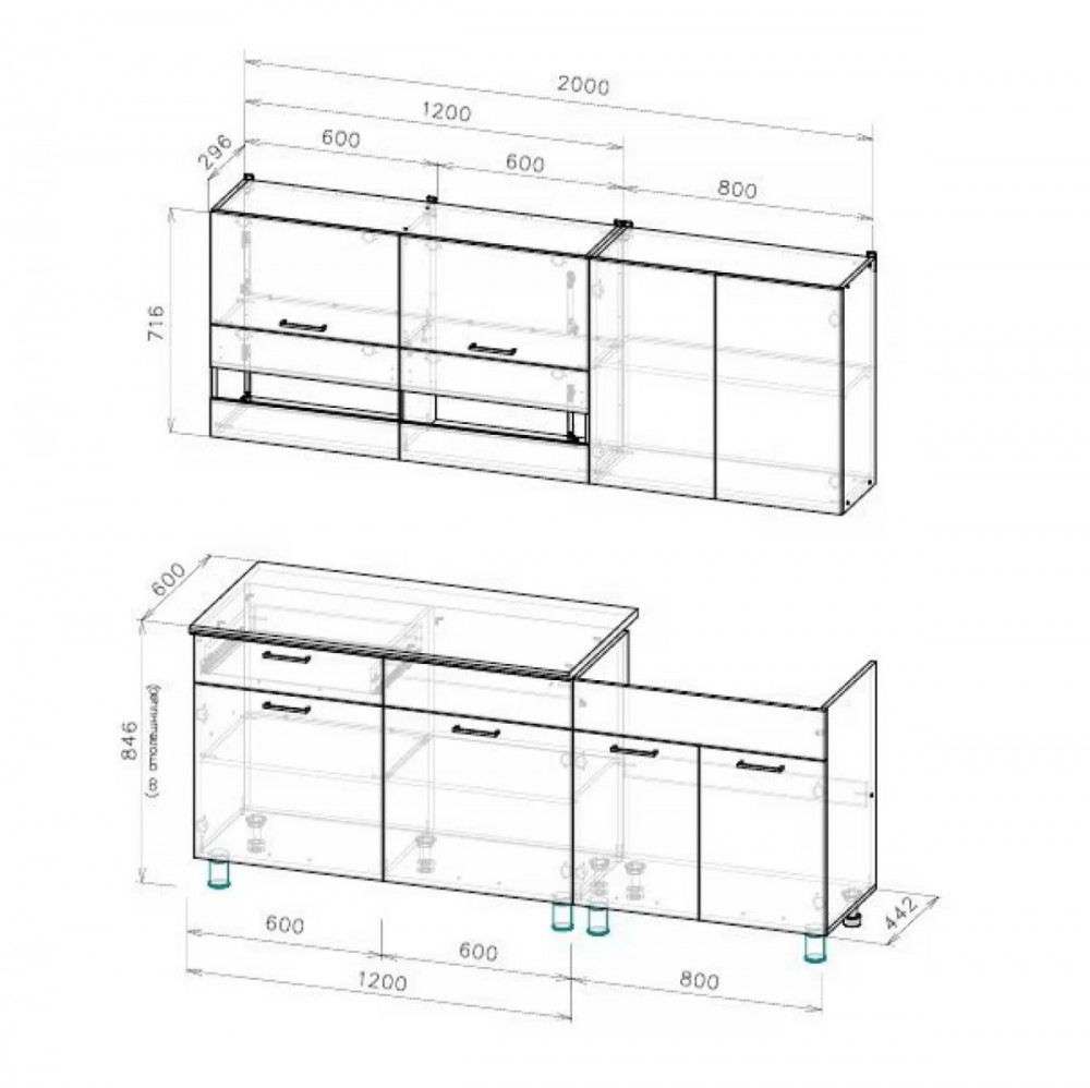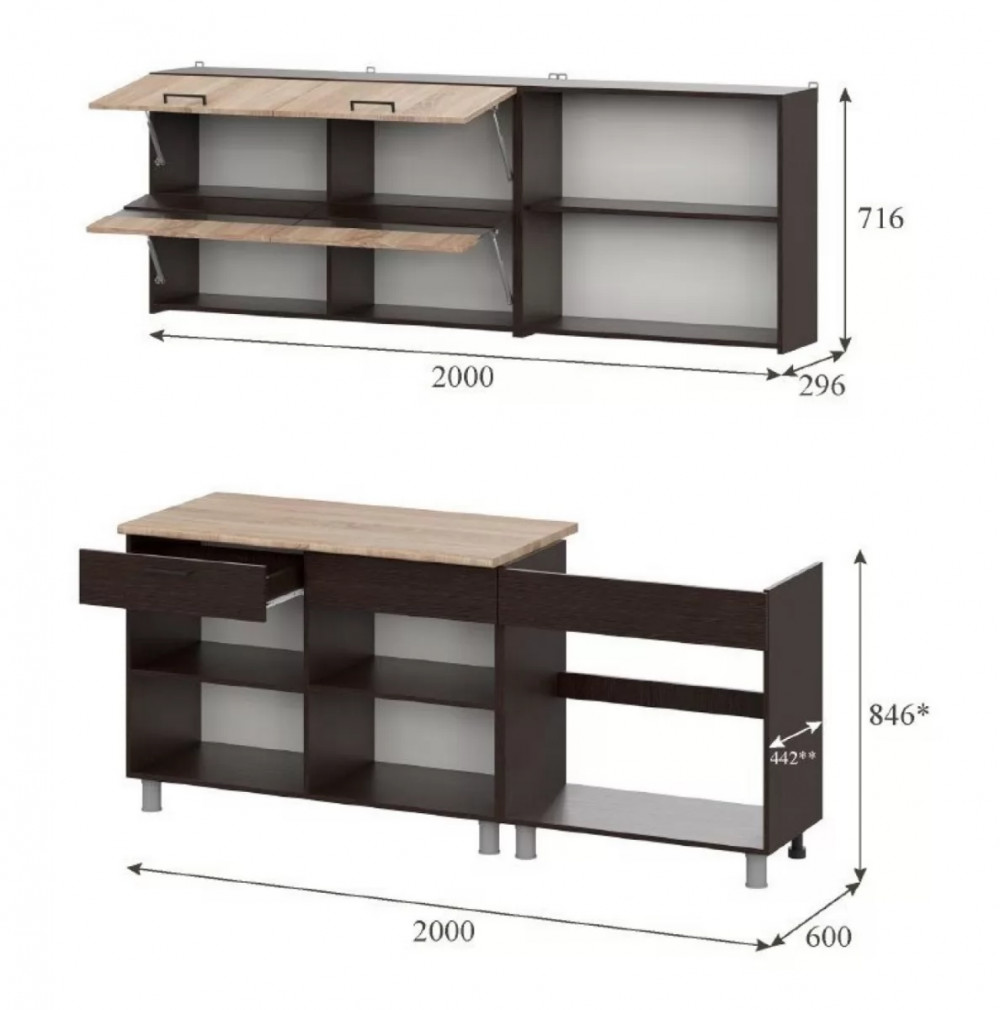 | *Ширина гарнитура | 2000 мм |