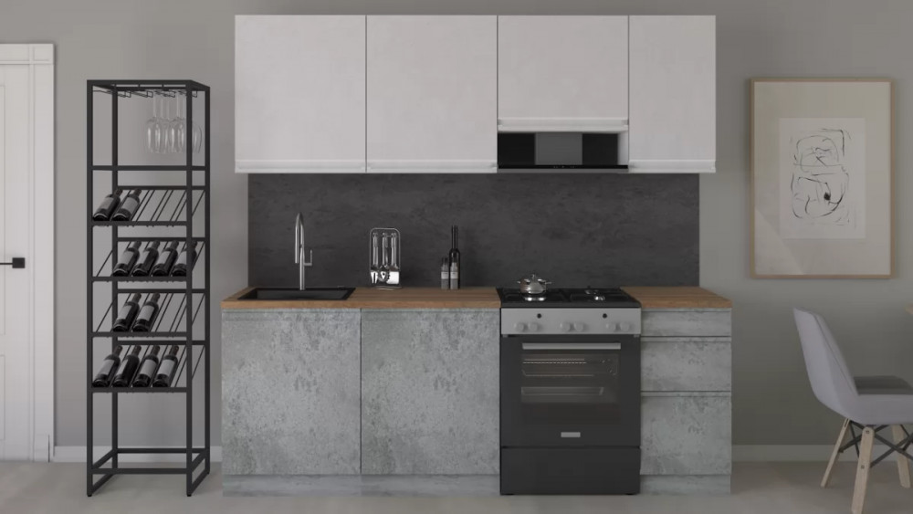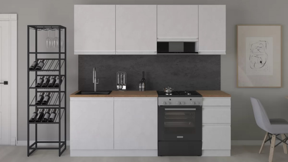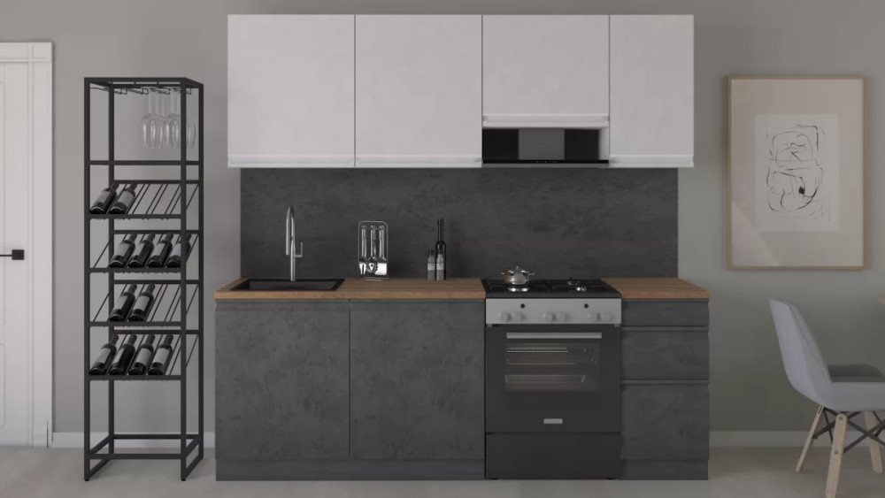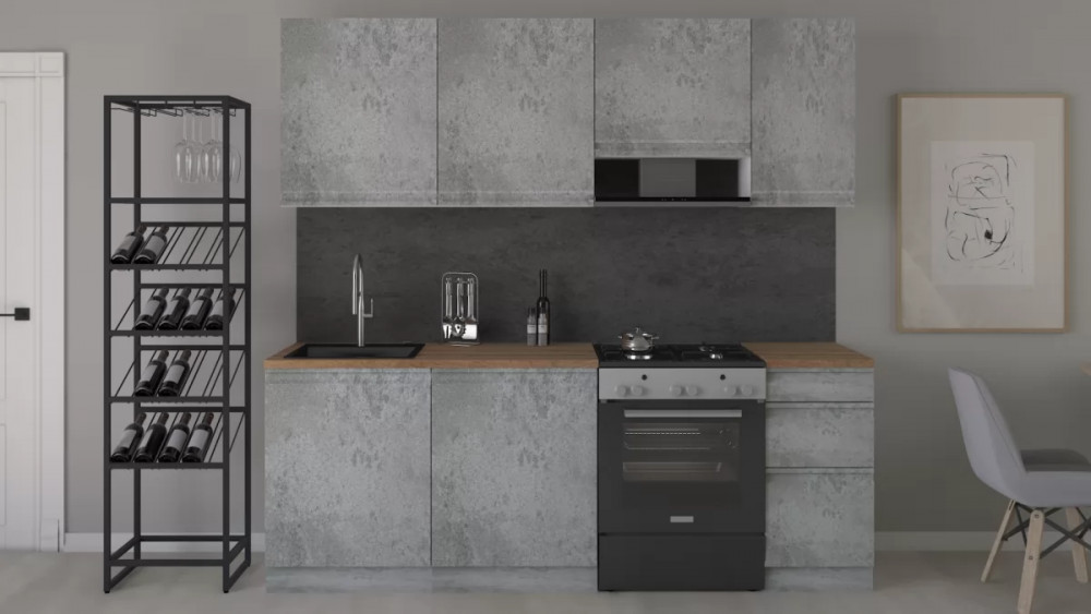 Габаритный размер готового набора модулей с учетом газовой плиты на 60см: 200 см.