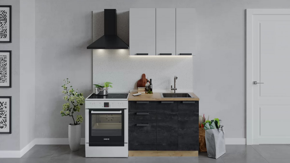 Кухонный гарнитур «Детройт» длиной 150 см Белый/Угольный Камень