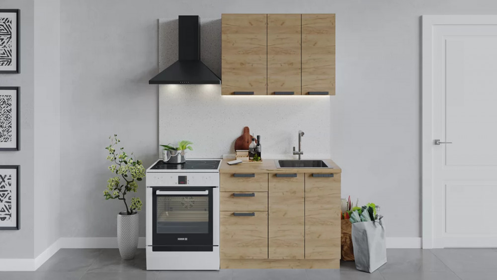 Кухонный гарнитур «Детройт» длиной 150 см Дуб крафт золотой/Дуб Крафт золотой