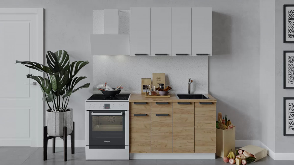 Кухонный гарнитур «Детройт» длиной 200 см Белый/Дуб Крафт золотой