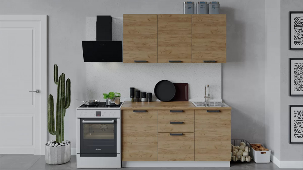 Кухонный гарнитур «Детройт» длиной 180 см Дуб крафт золотой/Дуб Крафт золотой