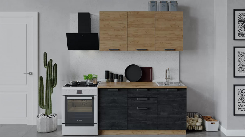 Кухонный гарнитур «Детройт» длиной 200 см Дуб крафт золотой/Угольный Камень