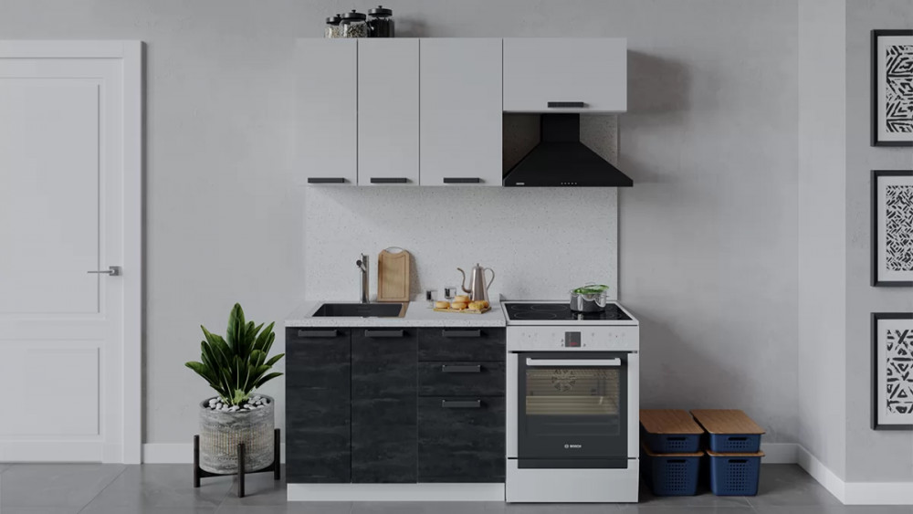 Кухонный гарнитур «Детройт» длиной 150 см Белый/Угольный Камень