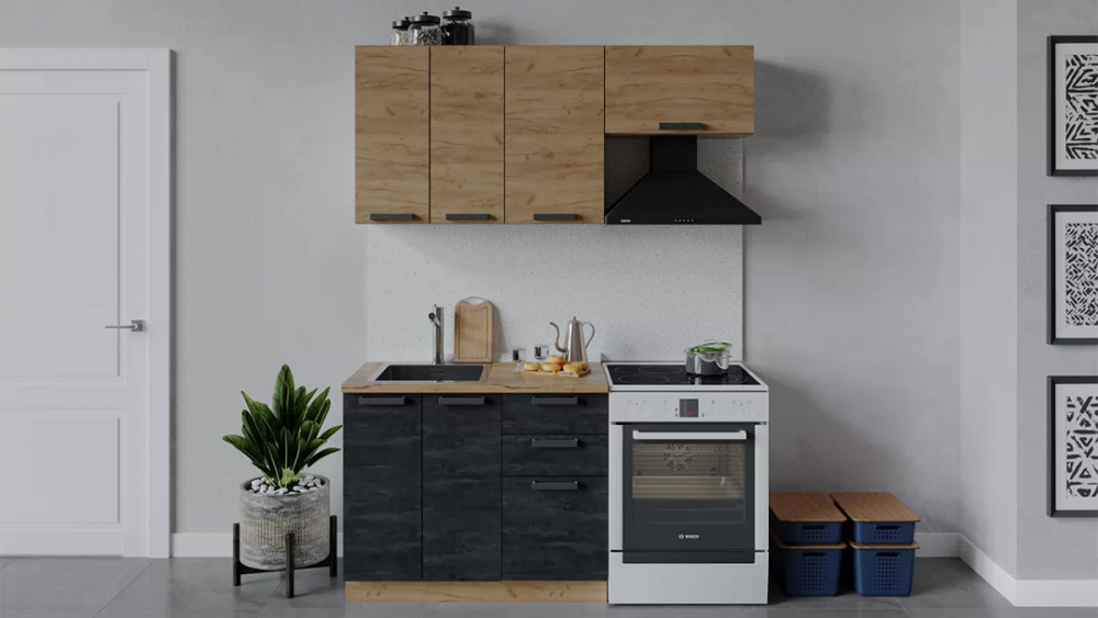 Кухонный гарнитур «Детройт» длиной 150 см Дуб крафт золотой/Угольный Камень