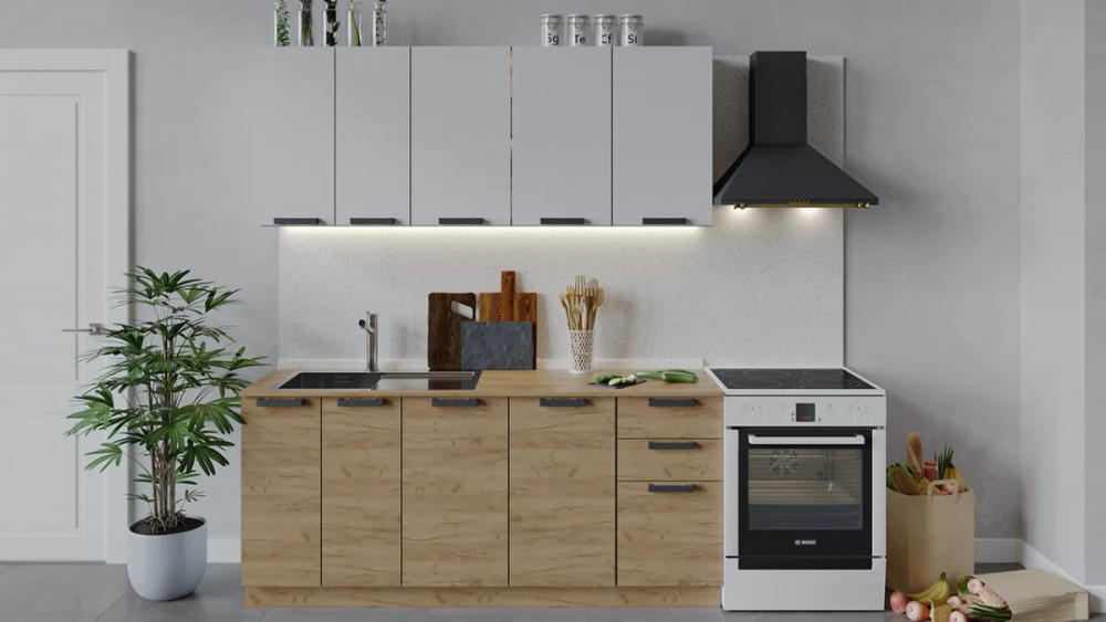 Кухонный гарнитур «Детройт» длиной 200 см Дуб крафт золотой/Дуб Крафт золотой