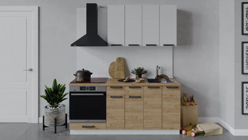 Кухонный гарнитур «Кимберли» длиной 200 см Дуб Крафт золотой, Сноу, Титан