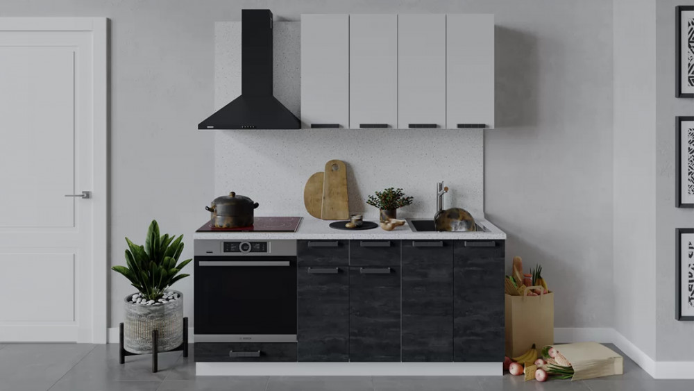Кухонный гарнитур «Детройт» длиной 200 см Белый/Угольный Камень