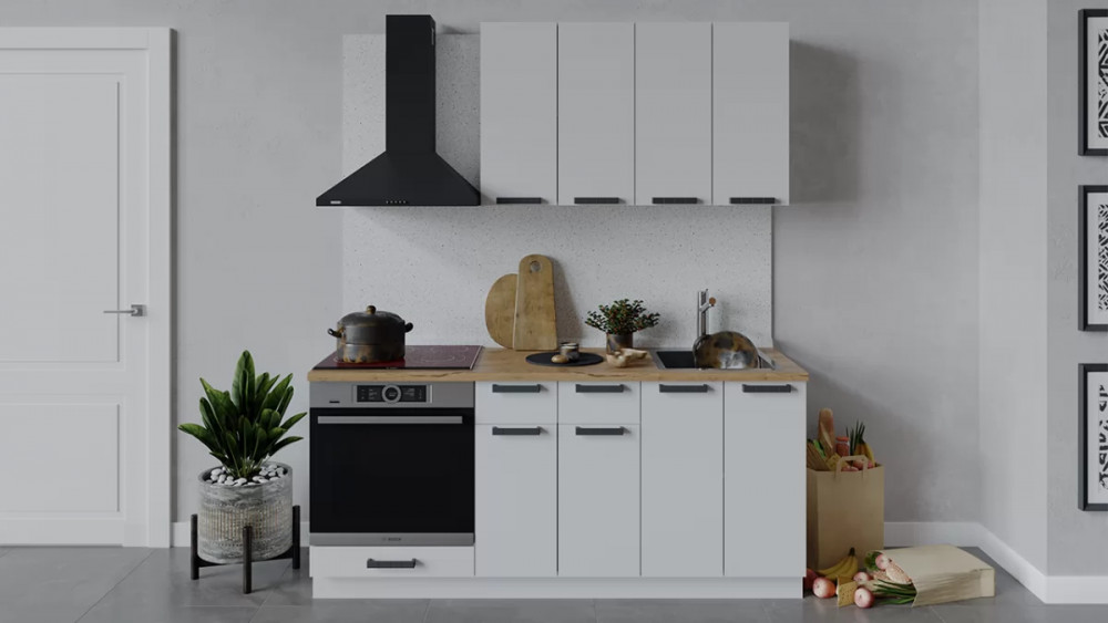 Кухонный гарнитур «Детройт» длиной 200 см Белый/Белый глянец