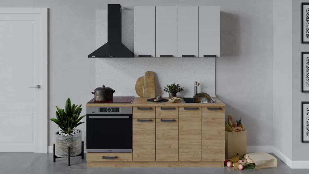 Кухонный гарнитур «Детройт» длиной 180 см Дуб крафт золотой/Дуб Крафт золотой