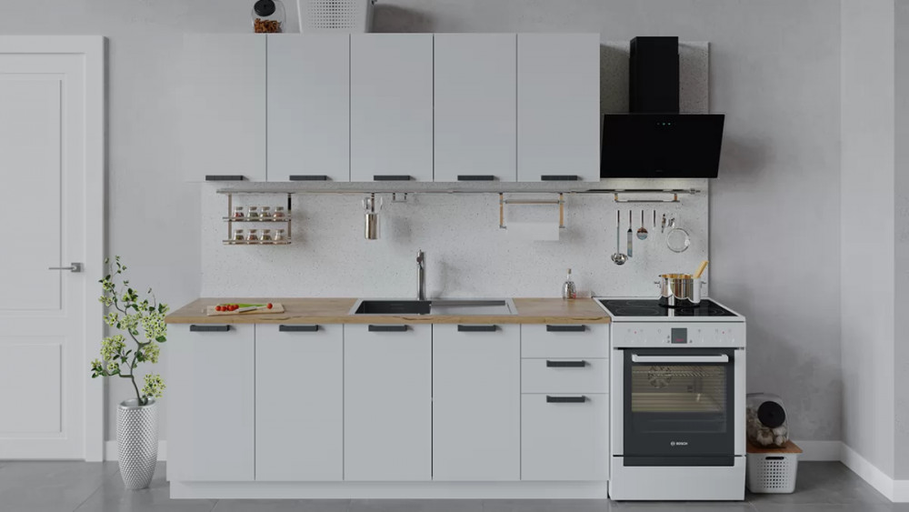 В стоимость не включено: Стеновая панель, столешница, доводчики, бытовая техника, мойка, смеситель, аксессуары