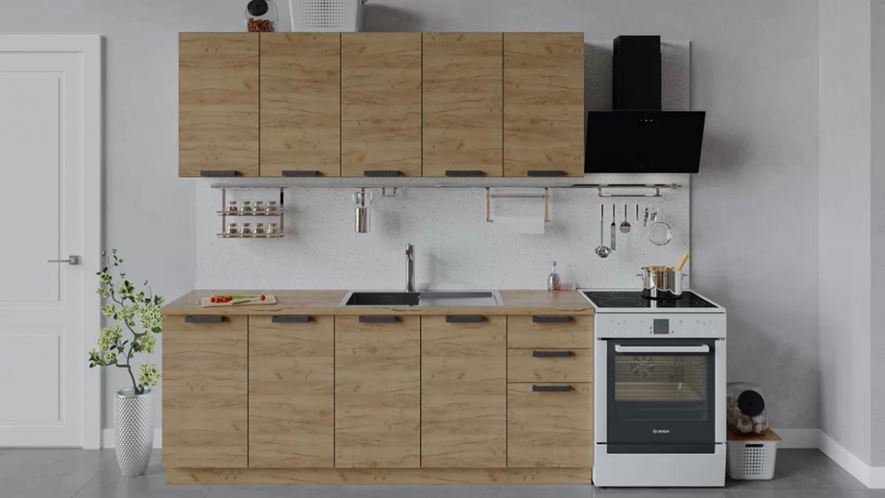 Кухонный гарнитур «Детройт» длиной 200 см Дуб крафт золотой/Дуб Крафт золотой
