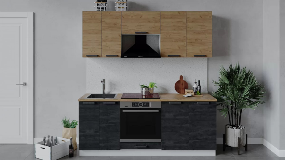 Кухонный гарнитур «Детройт» длиной 200 см Дуб крафт золотой/Угольный Камень