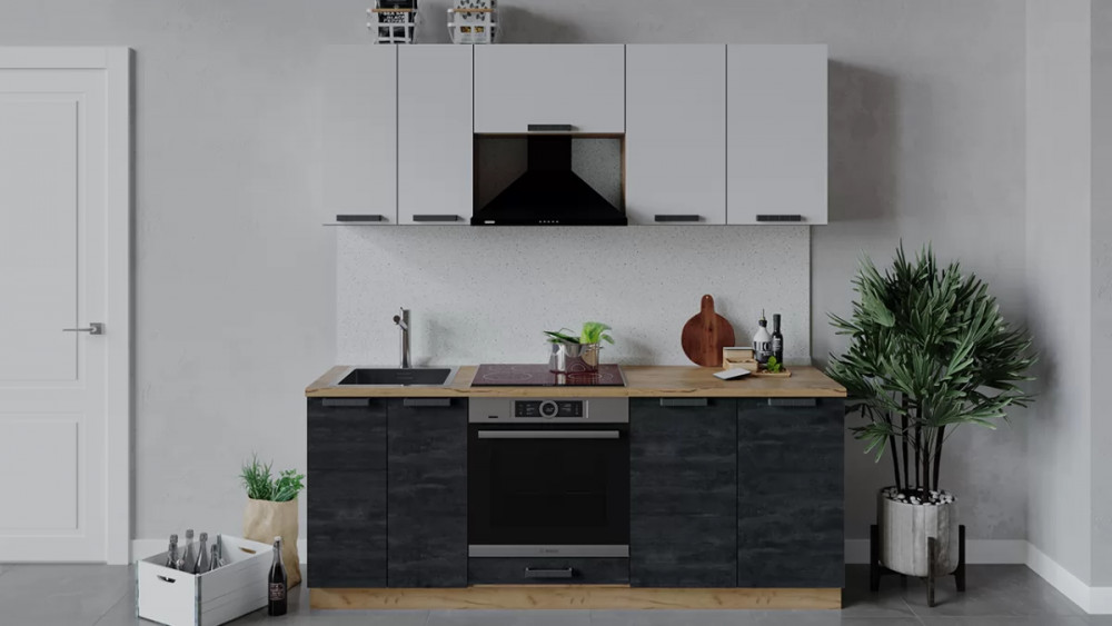 Кухонный гарнитур «Детройт» длиной 200 см Белый/Угольный Камень