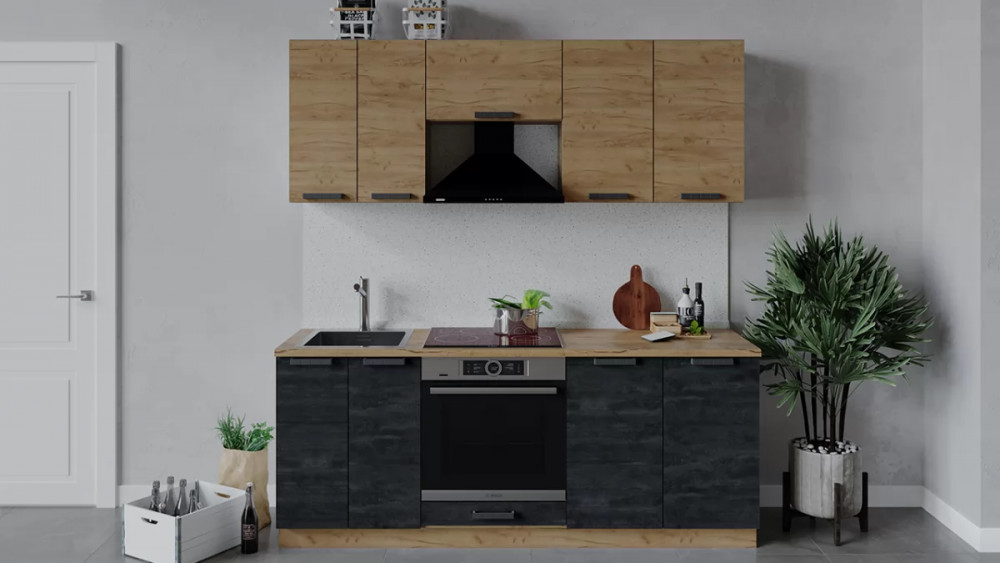 Кухонный гарнитур «Детройт» длиной 200 см Дуб крафт золотой/Угольный Камень