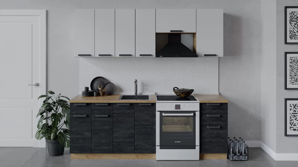 Кухонный гарнитур «Детройт» длиной 200 см Белый/Угольный Камень