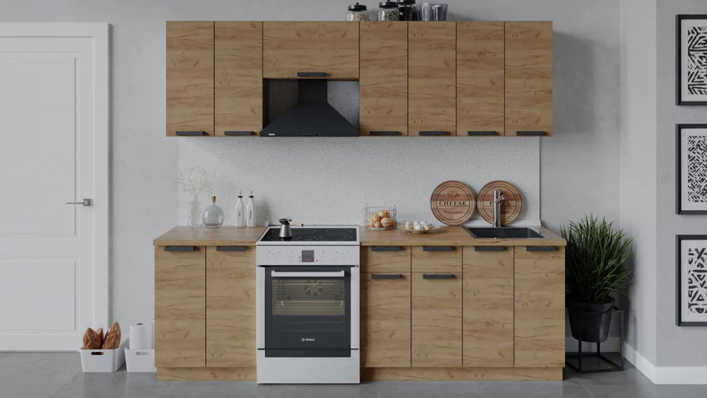 Кухонный гарнитур «Детройт» длиной 200 см Дуб крафт золотой/Дуб Крафт золотой