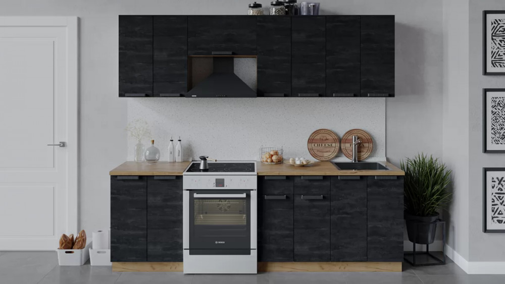 Кухонный гарнитур «Детройт» длиной 200 см Дуб крафт золотой/Угольный Камень