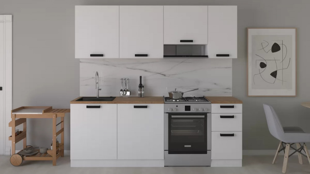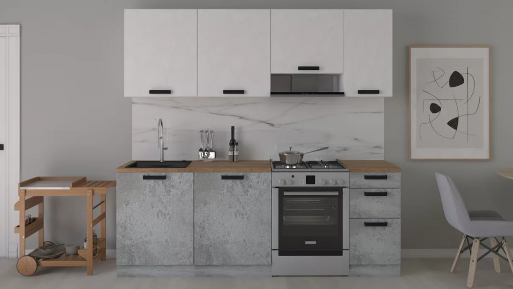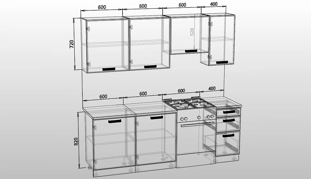 Габаритный размер готового набора модулей с учетом газовой плиты на 60см: 220 см.