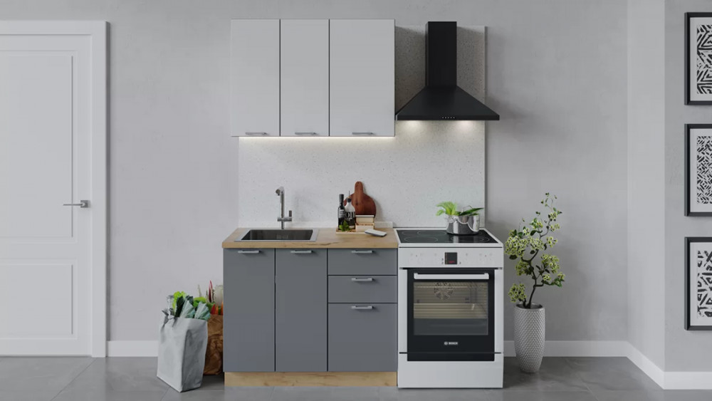 Кухонный гарнитур «Габриэлла» длиной 150 см Белый/Сноу/Титан
