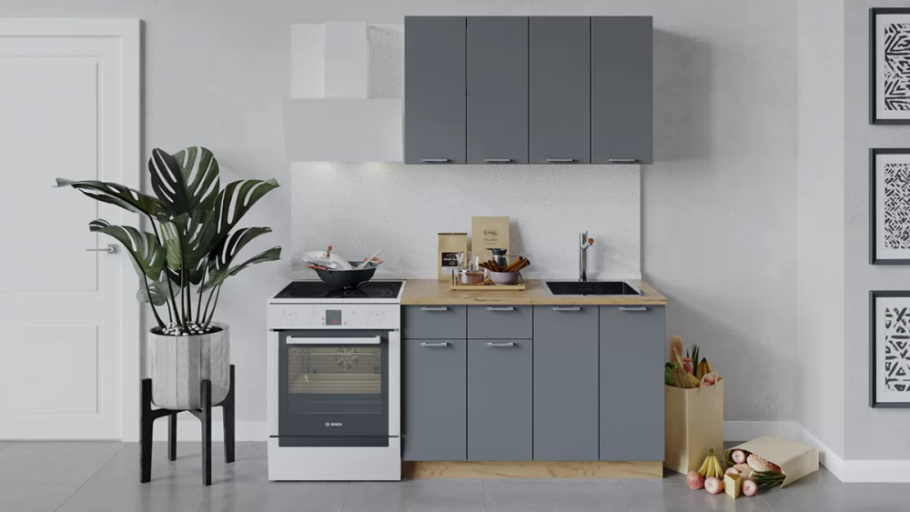 Кухонный гарнитур «Габриэлла» длиной 180 см Дуб крафт золотой/Титан