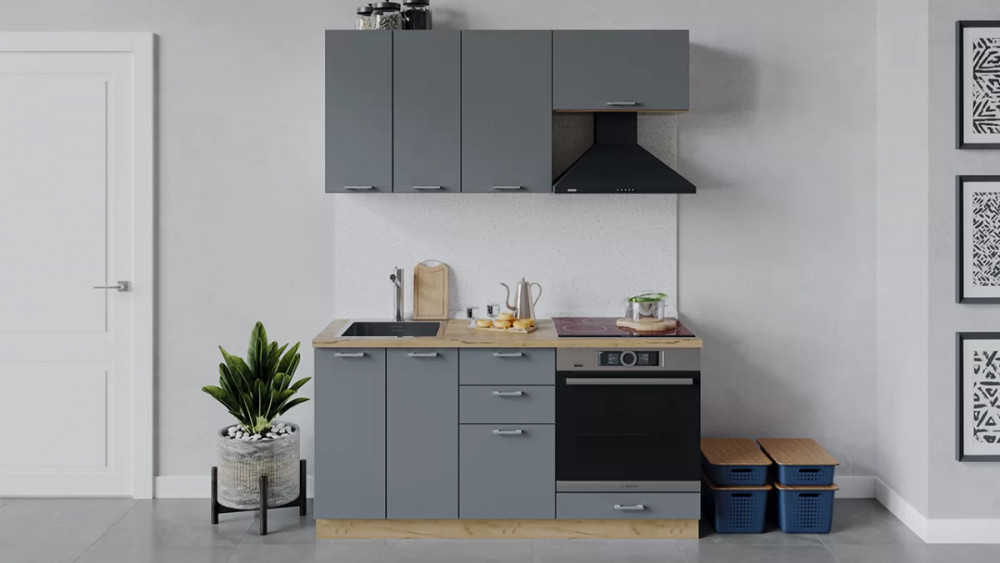 Кухонный гарнитур «Белладжио» длиной 150 см Дуб Крафт золотой, Софт графит