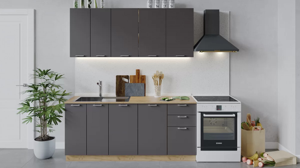 Кухонный гарнитур «Габриэлла» длиной 200 см Дуб крафт золотой/Титан