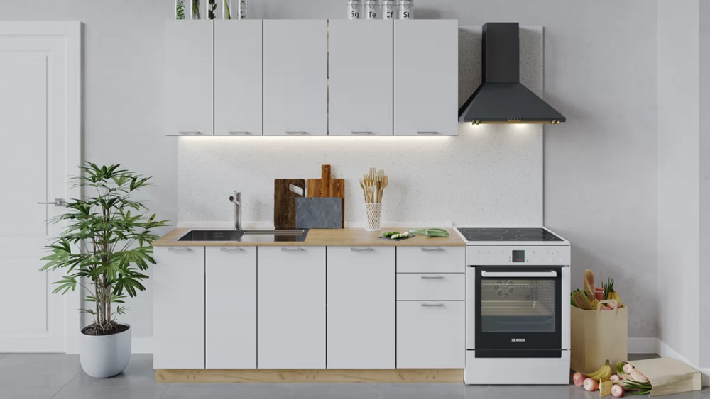 Кухонный гарнитур «Габриэлла» длиной 200 см Белый/Сноу/Муссон