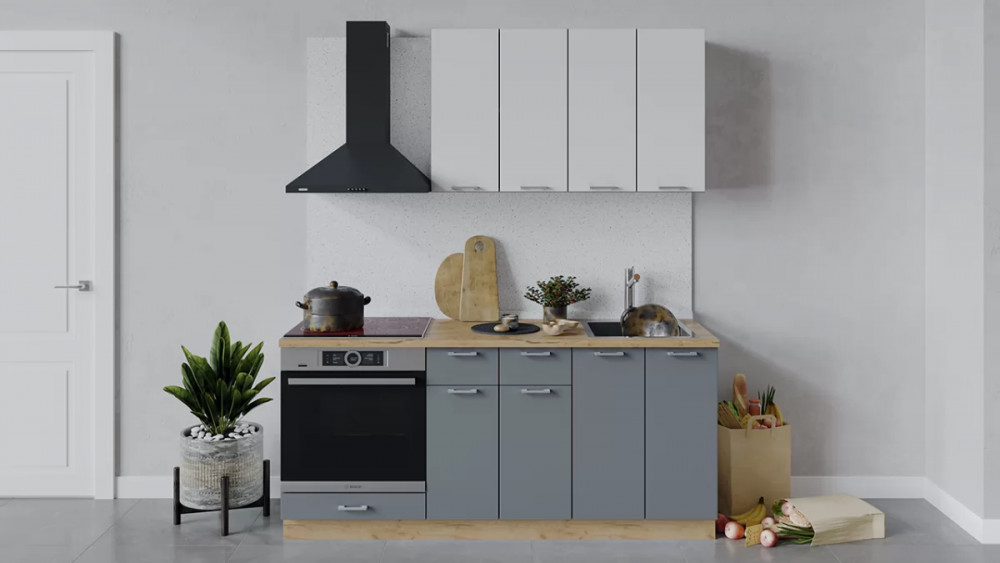 Кухонный гарнитур «Габриэлла» длиной 200 см Белый/Сноу/Титан