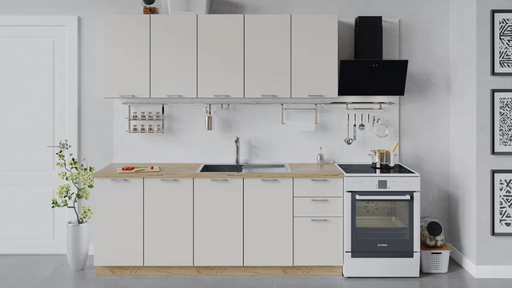 Кухонный гарнитур «Габриэлла» длиной 200 см Белый/Сноу/Муссон