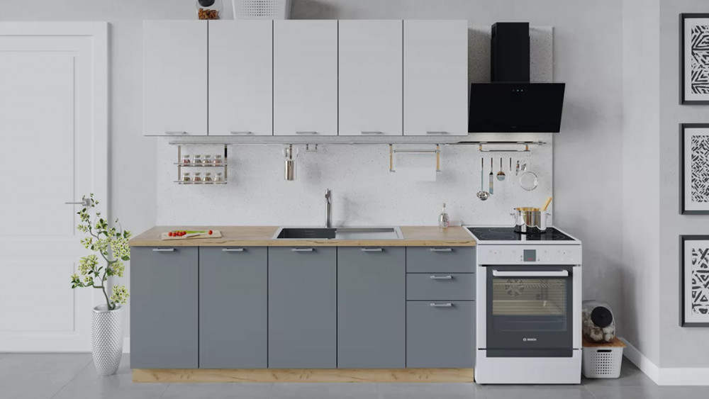 Кухонный гарнитур «Габриэлла» длиной 200 см Белый/Сноу/Титан
