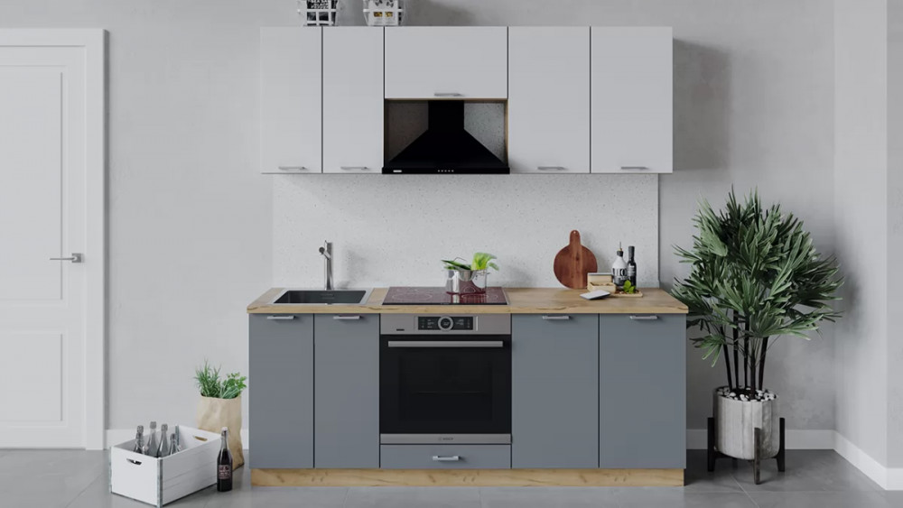 Кухонный гарнитур «Габриэлла» длиной 200 см Белый/Сноу/Титан