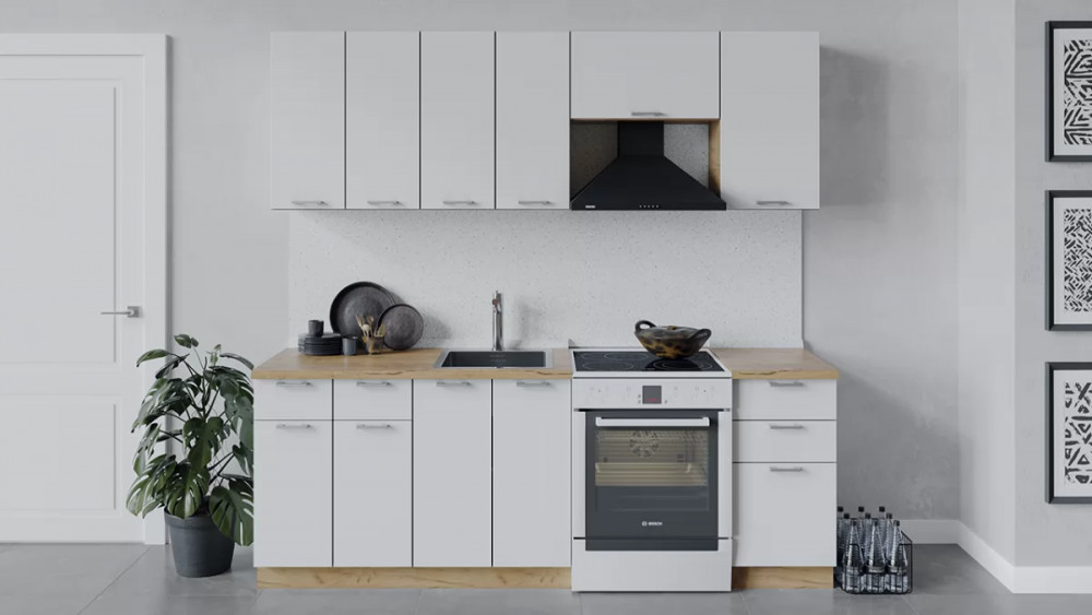 Кухонный гарнитур «Габриэлла» длиной 220 см Дуб крафт золотой/Сноу/Муссон