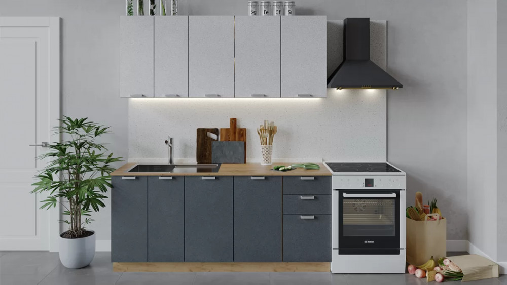 Кухонный гарнитур «Гранита» длиной 200 см Дуб крафт золотой/Бетон графит
