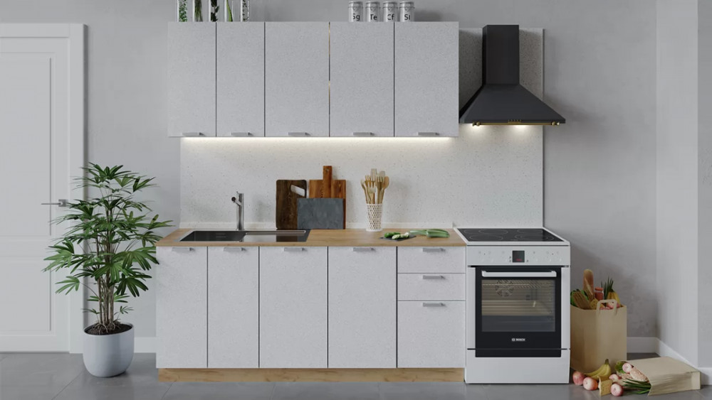Кухонный гарнитур «Гранита» длиной 200 см Дуб крафт золотой/Бетон снежный