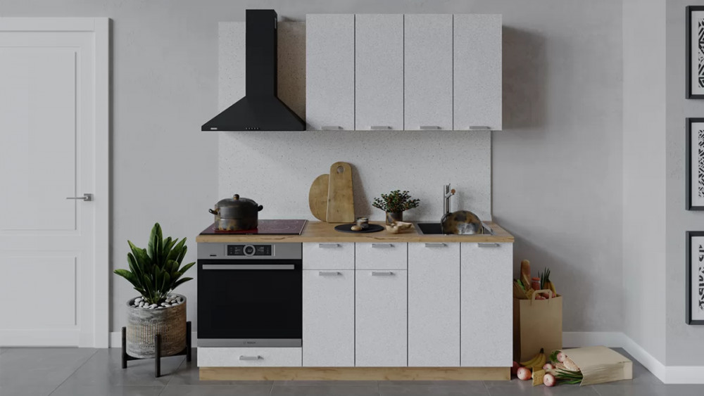 Кухонный гарнитур «Гранита» длиной 180 см Дуб крафт золотой/Бетон снежный