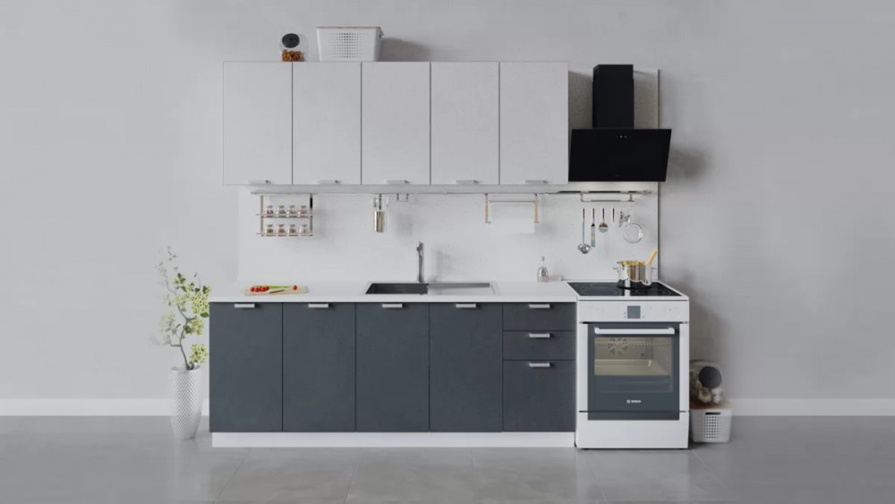 Модульная кухня «Гранита» Дуб крафт золотой/Бетон снежный/Бетон графит