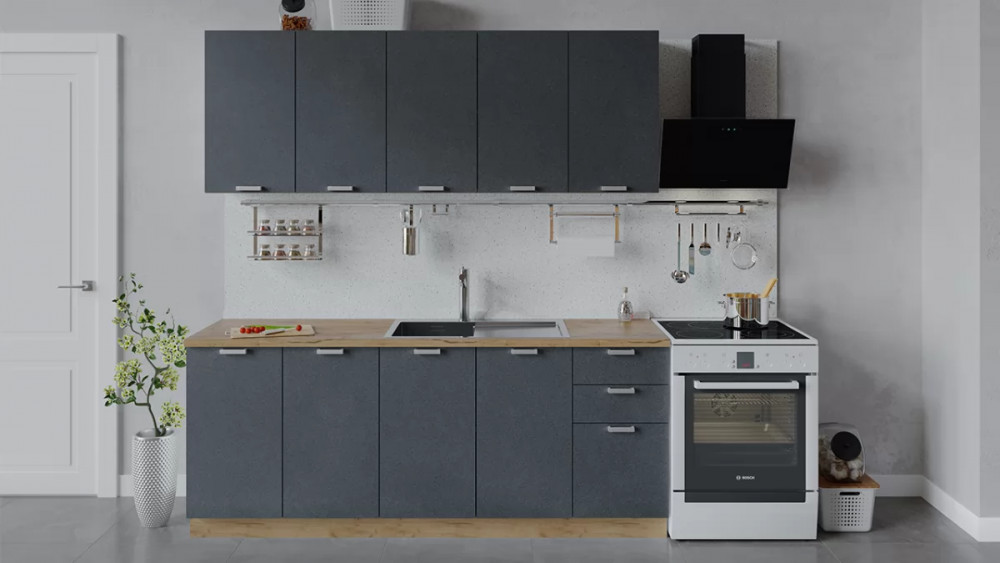 Кухонный гарнитур «Гранита» длиной 200 см Дуб крафт золотой/Бетон графит