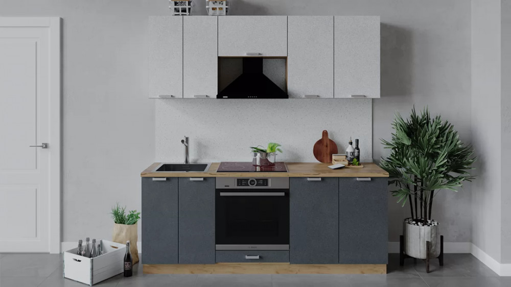 Кухонный гарнитур «Гранита» длиной 200 см Дуб крафт золотой/Бетон графит