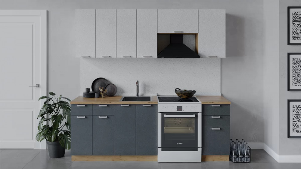 Кухонный гарнитур «Гранита» длиной 200 см Дуб крафт золотой/Бетон графит