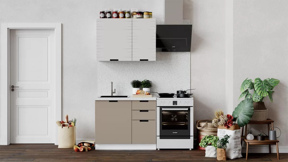 Кухонный гарнитур «Белладжио» №3 Белый, Софт панакота, Софт капучино