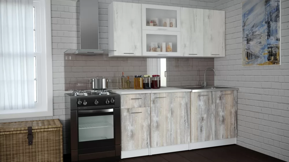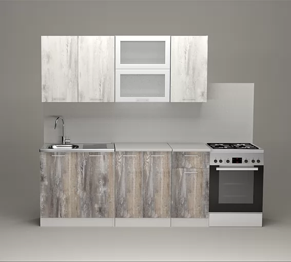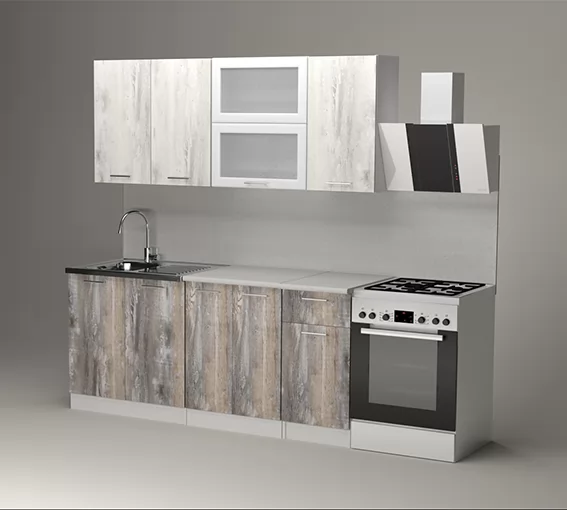 Кухонный угловой гарнитур арт.15 ЛОФТ,1200x1800 мм, Бетон тёмный/Рустик соломенный