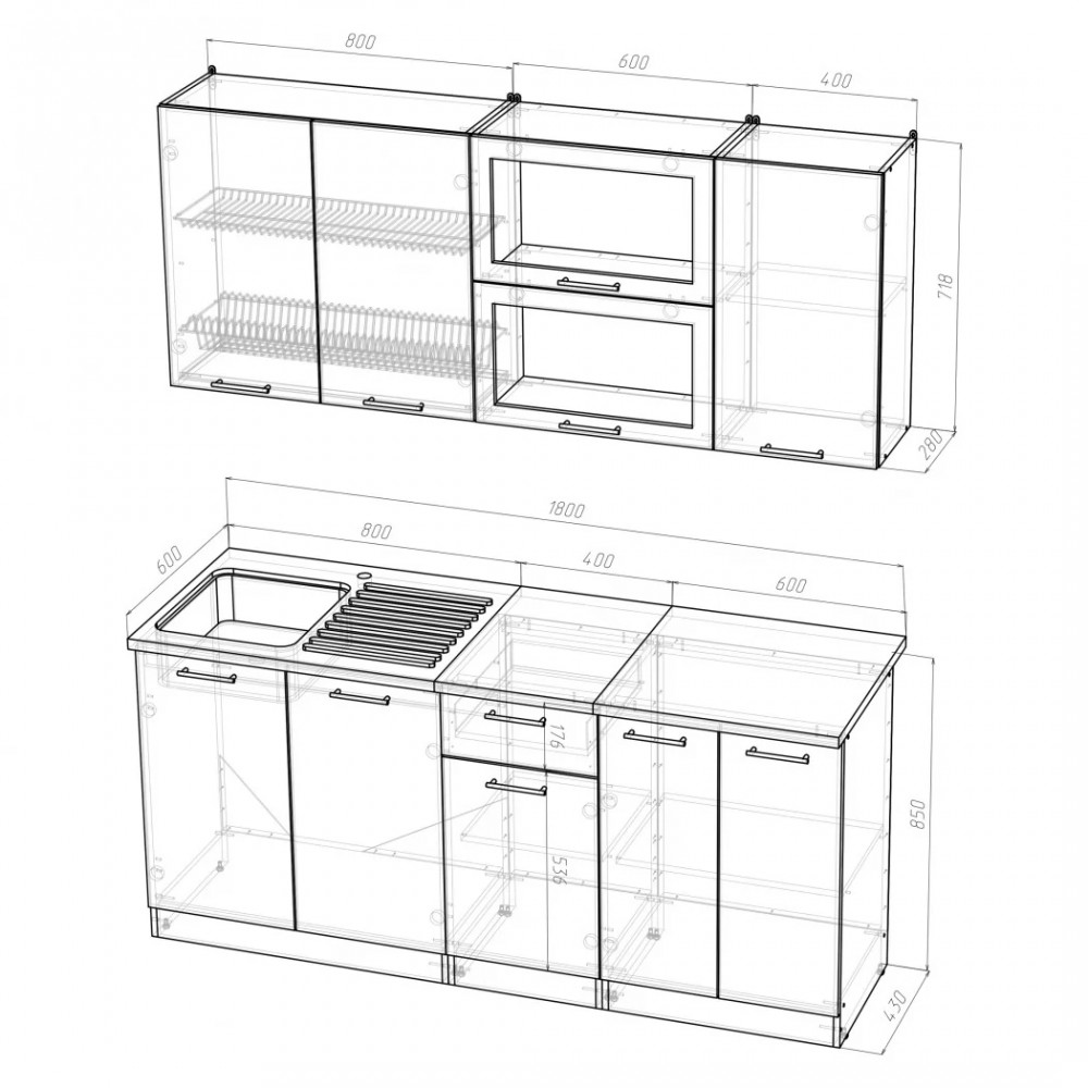 | *Ширина гарнитура | 1800 мм |