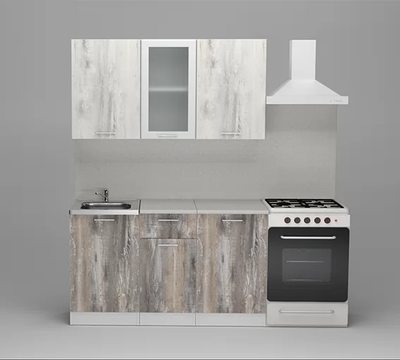 Кухонный прямой гарнитур арт.23 ЛОФТ,1800 мм, Рустик натур/Бетон темный/столешница Дуб Бунратти