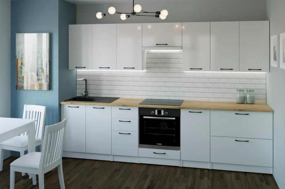 Стильные и функциональные готовые кухни - это не только комфорт и уют в доме, но и эстетика. Кухонный гарнитур из ЛДСП в модном цвете впишется в современный дизайн интерьера. Подойдет как для частного дома, так и для квартиры. Напольные и подвесные шкафы позволят разместить всю кухонную утварь. Гарнитур состоит из набора шкафов, которые органично комбинируются между собой. Ящики, полки, навесные шкафы, тумбы и пеналы можно менять местами, создавая практичное рабочее пространство.