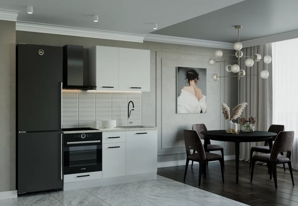 Кухонный гарнитур «Белладжио» длиной 160 см Белый, Софт панакота, Софт капучино