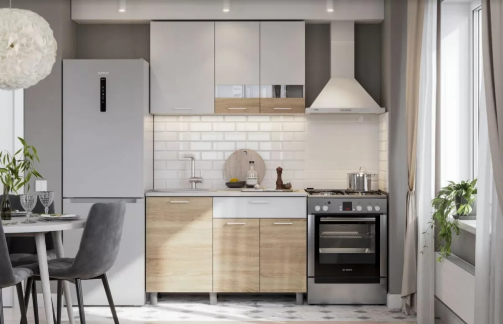 Кухонный гарнитур «Кимберли» длиной 160 см со шкафом НБ Дуб Крафт золотой, Титан